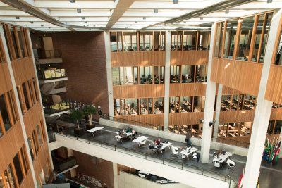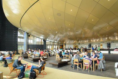 In veel gebouwen op de campus zijn werkplekken gecreëerd waar bezoekers rustig kunnen werken.