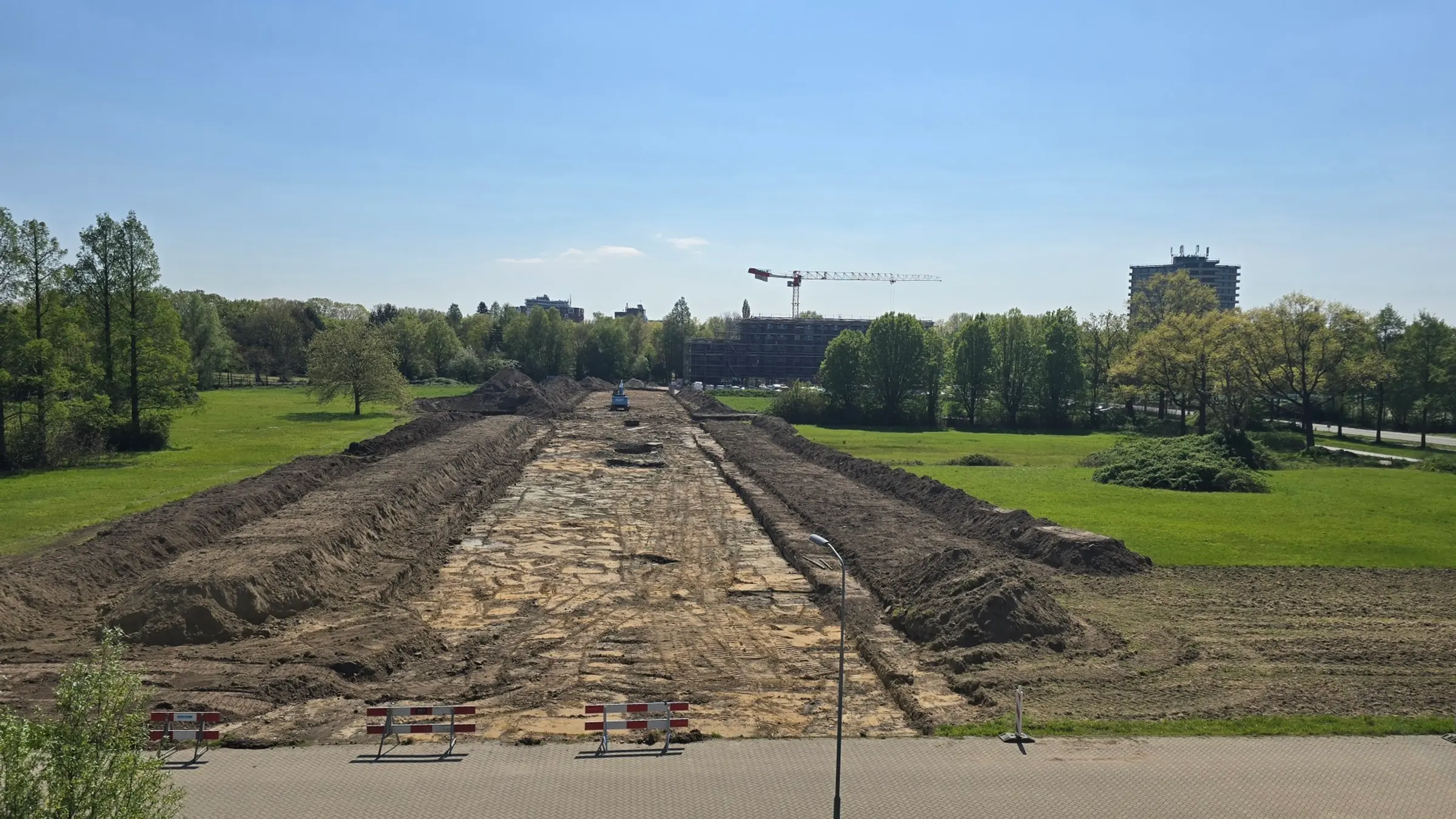 Om het nieuwe gebouw van Idealis voor toekomstig verkeer te ontsluiten wordt een weg op Campus Oost gerealiseerd. Naast deze weg komt een voetpad en er wordt ook straatverlichting aangebracht. Deze werkzaamheden zijn begin april gestart. De werkzaamheden duren naar verwachting circa 4 maanden. De werkzaamheden worden zo veel mogelijk emissieloos uitgevoerd. Zo is de grote kraan (op de foto zichtbaar) volledig elektrisch, wat ook nog ’s als voordeel heeft dat deze geen geluid produceert.