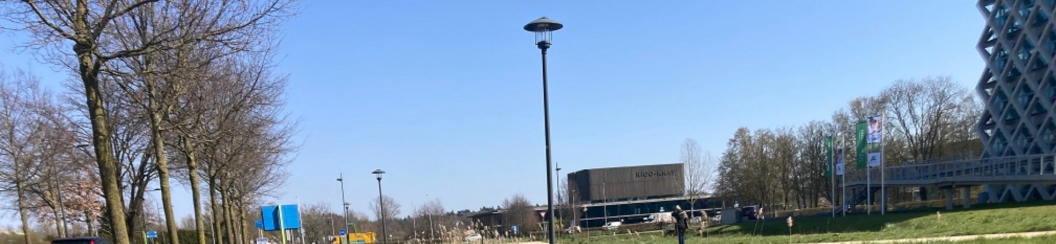 Een kapvergunning wordt meestal afgegeven met een herplantplicht. Als het niet mogelijk of zinvol is, een vergelijkbare boom op ongeveer dezelfde plek te planten, compenseren we dit op een andere manier. Bijvoorbeeld door in de slipstream van infrastructurele werkzaamheden gras te vervangen door een gevarieerde beplanting van kruiden, struiken en bomen. In de beplanting van de strook langs het nieuwe fietspad, ter hoogte van het amfitheater, zijn bijvoorbeeld 10 nieuwe bomen opgenomen. Ook gebruiken we bomen die op de ene plek weg moeten op een andere plek. Zo zijn eiken die moesten wijken voor de uitbreiding van de onderzoeksfaciliteiten bij Axis twee geleden overgebracht naar de Leeuwenborch, waar vorig jaar 14 populieren en wilgen zijn gesneuveld in de voorjaarsstormen.