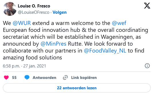 We zien dat op sociale media regelmatig berichten gedeeld worden waarbij niet altijd duidelijk is wat de band tussen WUR en WEF is. Wageningen University & Research werkt aan meerdere duurzaamheidsdoelen, zoals een gezonde maaltijd en duurzaam geproduceerd voedsel voor iedereen. Daarvoor moet de manier waarop we voedsel maken veranderen en dat vraagt veel onderzoek en innovatie. Daarvoor is de samenwerking met partners in de overheid, onderzoek, maatschappelijke organisaties en bedrijfsleven van groot belang.