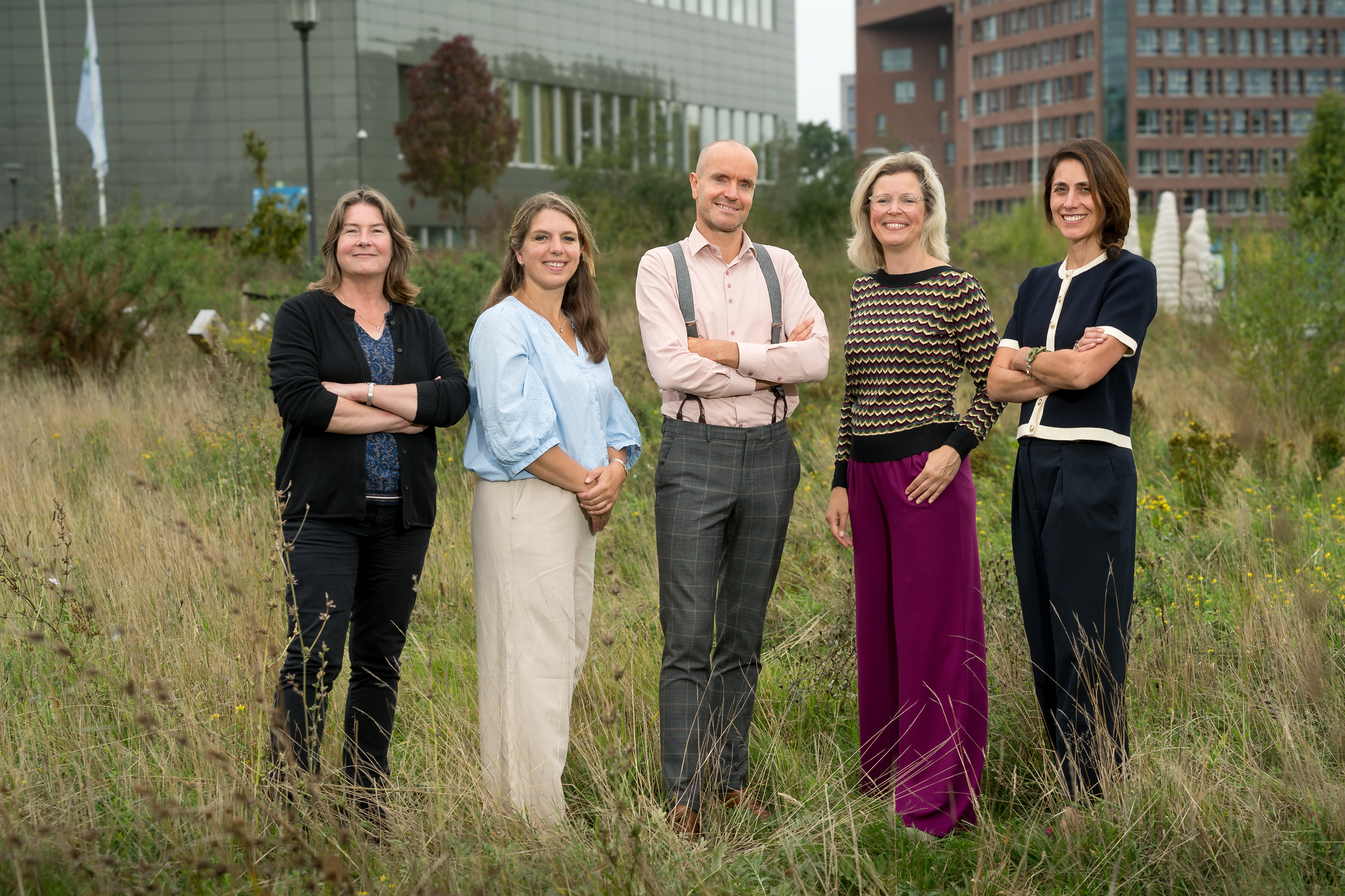 Van links naar rechts: Anne Mensink, Manager Wageningen Campus & Shared Facilities; Flora de Ruiter, Events; Chris van Kreij, Dialogue Centre Omnia; Tineke Bremer, Campus Community; Caroline Bijkerk, Innovation Ecosystem; Ruud Duijghuisen, Business Developer (niet op de foto)