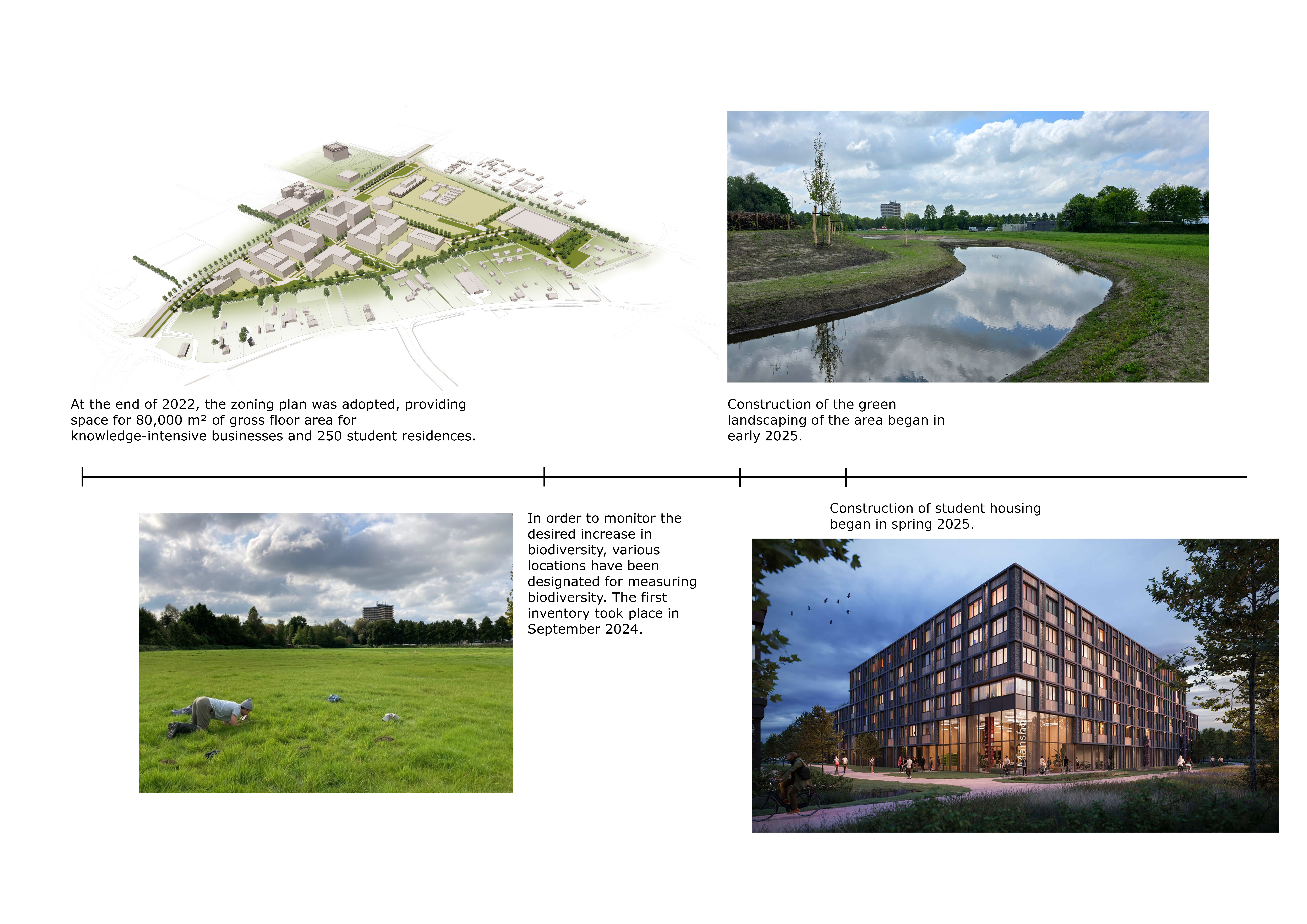 - Vanwege de cruciale rol van studenten en jong talent op Wageningen Campus worden er in de zuidpunt 250 studentenwoningen gerealiseerd door Idealis.